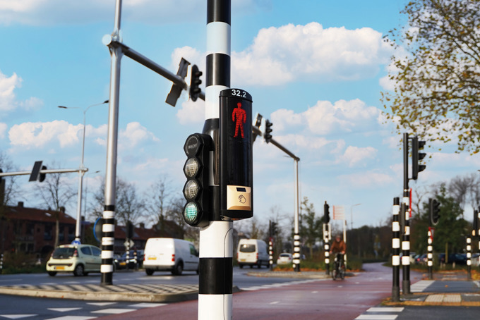 Een verkeerslantaarn gemaakt van biologisch restafval, met een natuurlijke uitstraling!