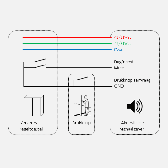 Alle functies zijn eenvoudig aan te sturen en in te stellen. De akoestische signaalgever werkt op de bekende spanningen van 42Vac en 31Vac zoals toegepast in verkeersregelinstallaties. Het volume is onafhankelijk van de aangeboden spanning. Dit zorgt voor een constant signaal, ook bij een donkere avondspits. Het inschakelen van de dimspanning heeft geen invloed op het volume. Het dag- en nachtvolume zijn voor elke akoestische signaalgever afzonderlijk instelbaar. De keuze voor dag- of nachtvolume kunt u regelen vanuit het regeltoestel en applicatie.