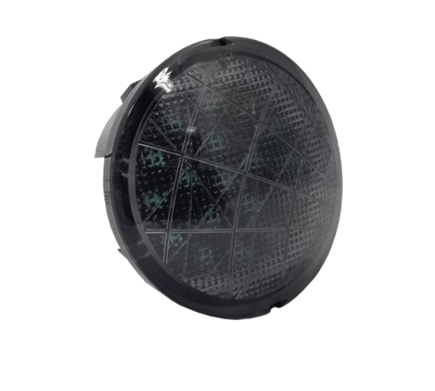 Complete set – bestaande uit een lens met LED-print, leverbaar in de kleuren rood, geel of groen.