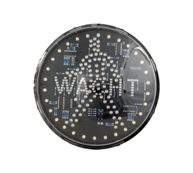 | Aftellicht | Aflopende ledring (LED wit) + tekst WACHT of STOP (LED rood), optioneel tekst BUS/TRAM (LED rood) |