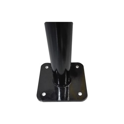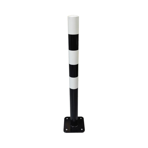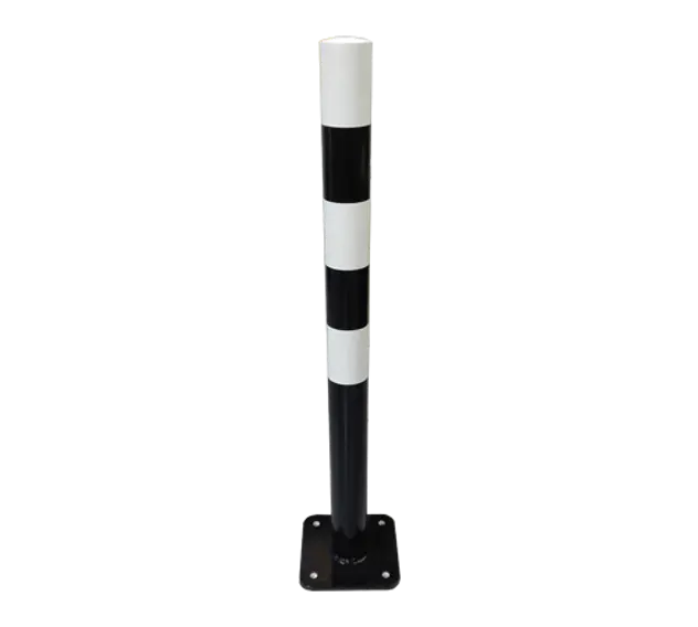 De standaard drukknopmast, voorzien van voetplaat. De mast is voorzien van standaard een poedercoating zwart wit geblokt en heeft een gat geschikt voor een standaard drukknop. De bijbehorende drukknop is onderstaand mee te bestellen.