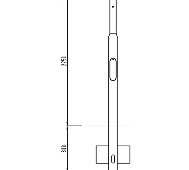 De standaard universeelmast voor lage verkeerslantaarns, dit type mast is te gebruiken in combinatie met opzet- en verlengstukken. De mast is voorzien van standaard een poedercoating zwart wit geblokt.